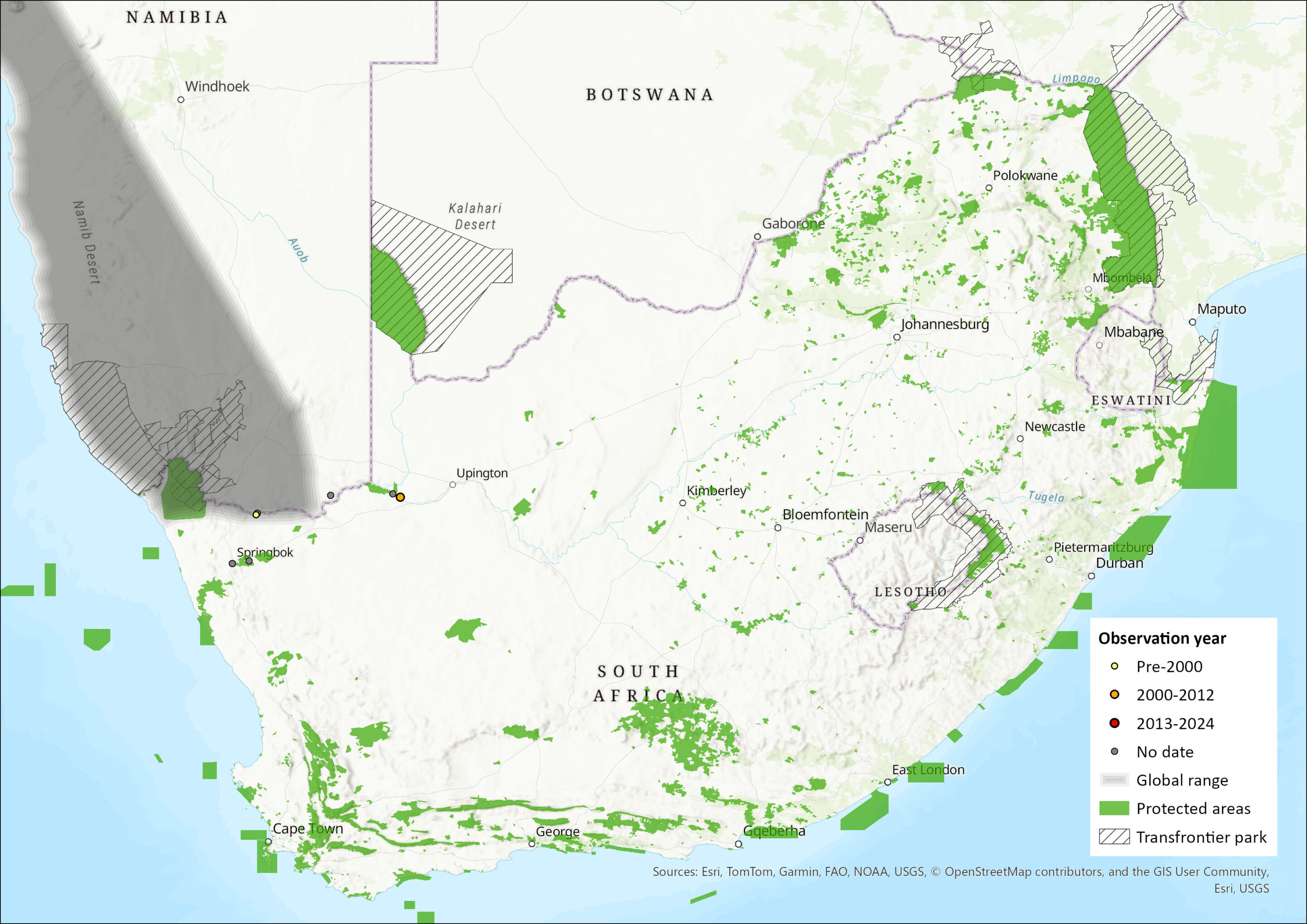 Figure 1. Distribution records for Angolan Hairy Bat (Cistugo seabrae) within the assessment region (South Africa, Eswatini and Lesotho). Note that distribution data is obtained from multiple sources and records have not all been individually verified.