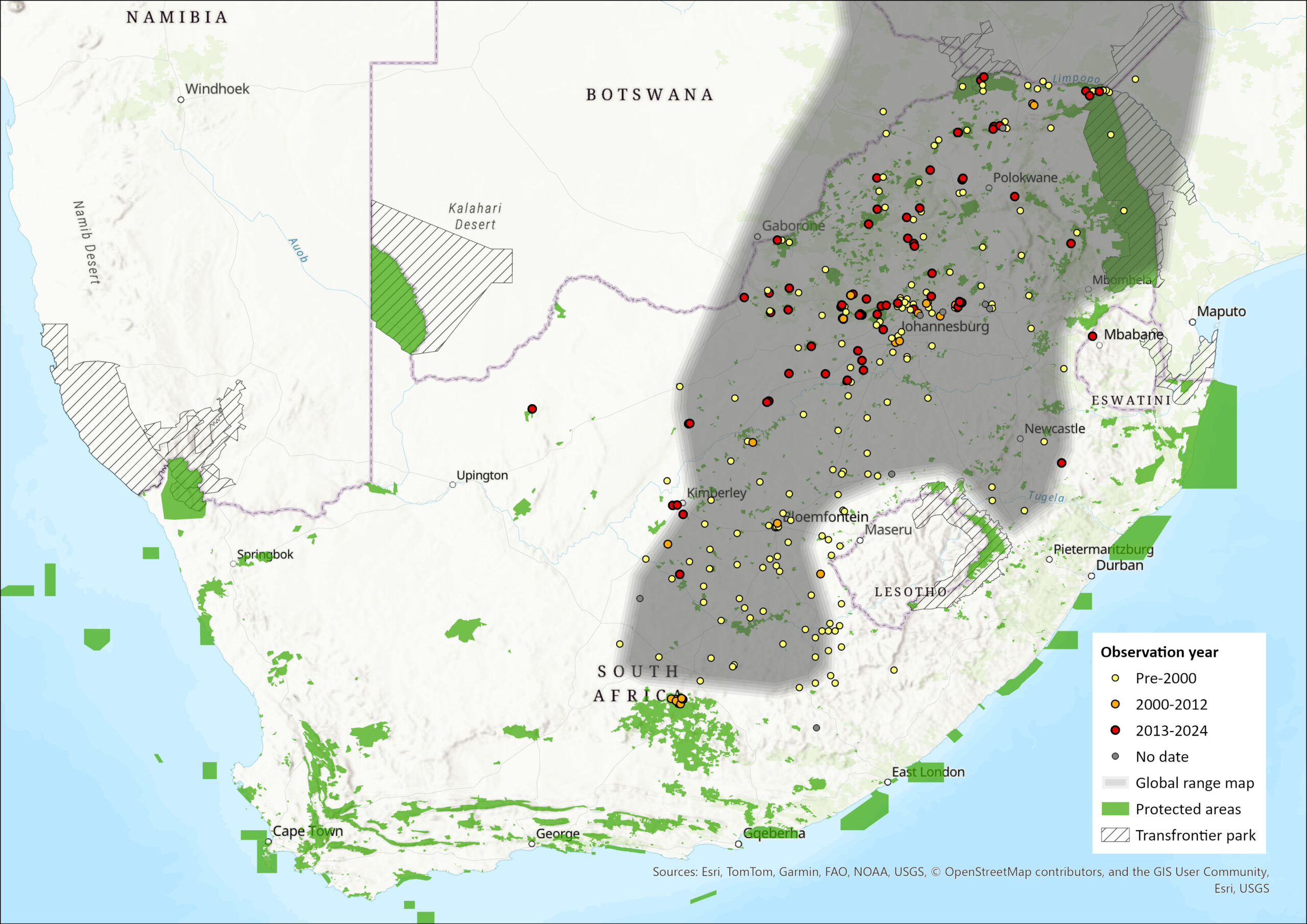 - Determine density estimates and range sizes across the species’ distribution in South Africa.