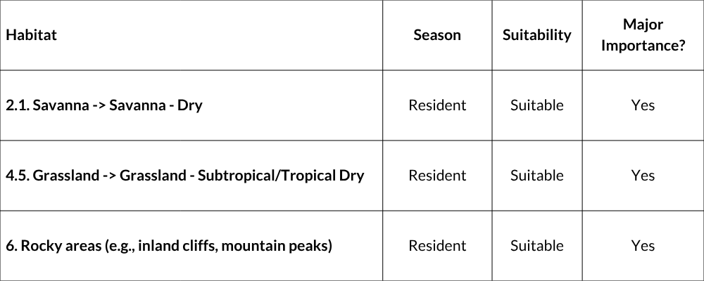 As its name suggests, this species prefers habitat with rocky outcrops or koppies (hills) that provide sufficient cracks and holes for shelter and nesting sites (Corbet & Hanks 1968; Rathbun 2005). For example, at Rolfontein Nature Reserve, Northern Cape Province, only one of 34 specimens was caught in an open vegetation community, and this was also on a trap-line that passed near a small pile of rocks (Jooste & Palmer 1982). The species prefers parts of rocky habitats with over-hanging ledges or vegetation that provides cover from aerial predators (Skinner & Chimimba 2005). Key vegetation types for this species include the Nama Karoo, Grassland and Savanna Biomes.