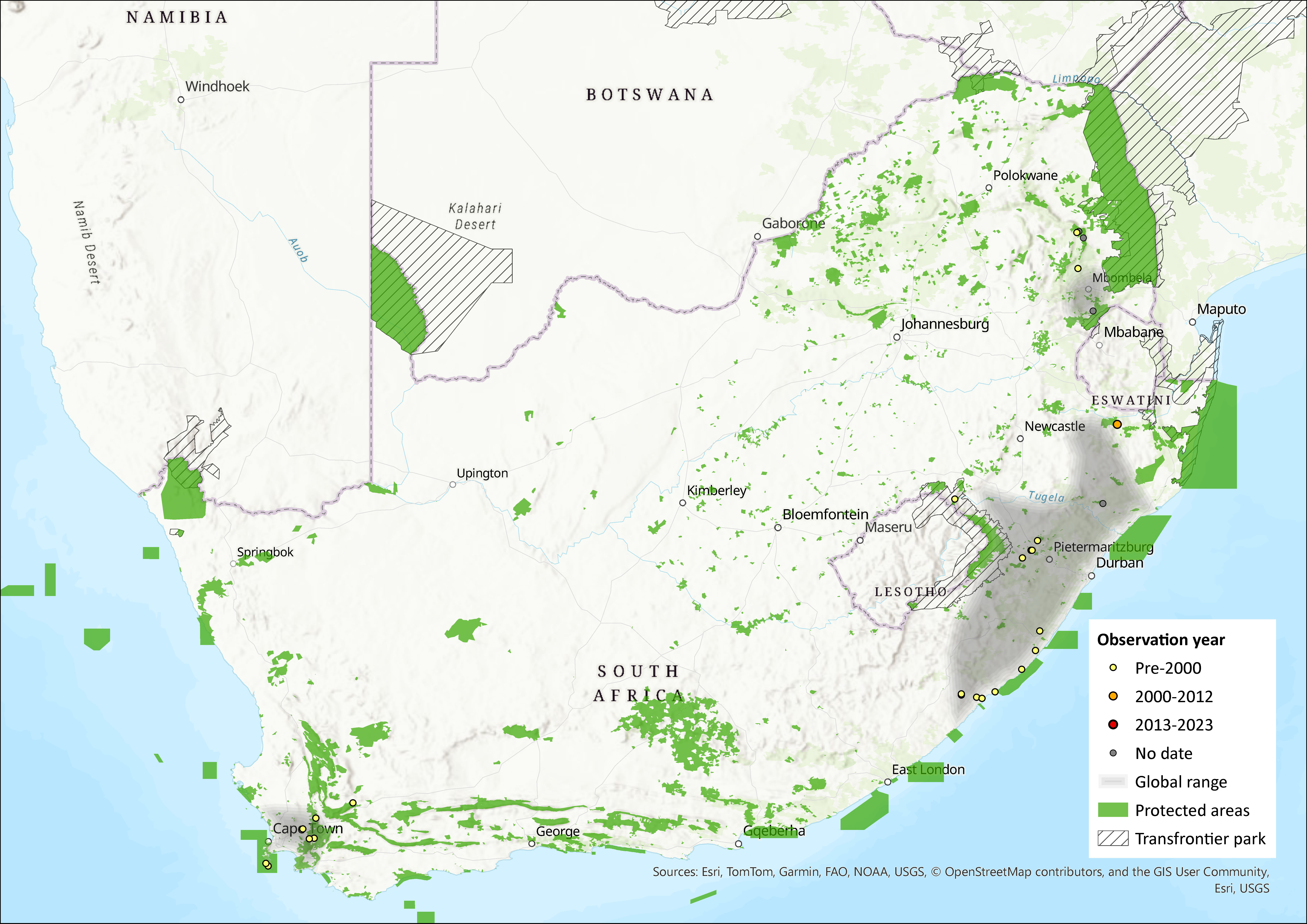 - Long-term, systematic monitoring is needed to establish subpopulation trends and threat levels, particularly in KwaZulu-Natal and Mpumalanga.
