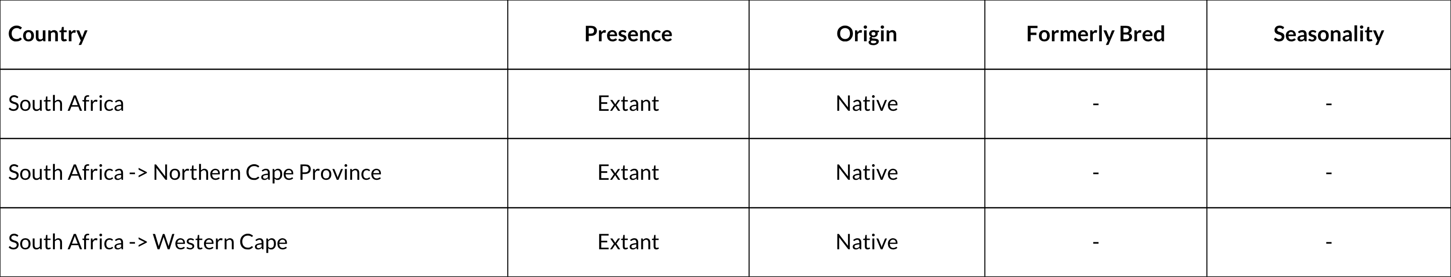 It should be noted that these are whereas subpopulations in the northern part of the distribution are always associated with alluvial floodplains and narrow belts of riverine vegetation adjacent to seasonal rivers on a scale that is unlikely to fit within these broader habitat types. They are thus highly reliant on the critical resource areas of Karoo riparian ecosystems. These descriptions do, however, give an indication of the general vegetation structure and composition within various parts of its range. whereas subpopulations in the northern part of the distribution are always associated with alluvial floodplains and narrow belts of riverine vegetation adjacent to seasonal rivers on a scale that is unlikely to fit within these broader habitat types. They are thus highly reliant on the critical resource areas of Karoo riparian ecosystems. These descriptions do, however, give an indication of the general vegetation structure and composition within various parts of its range.