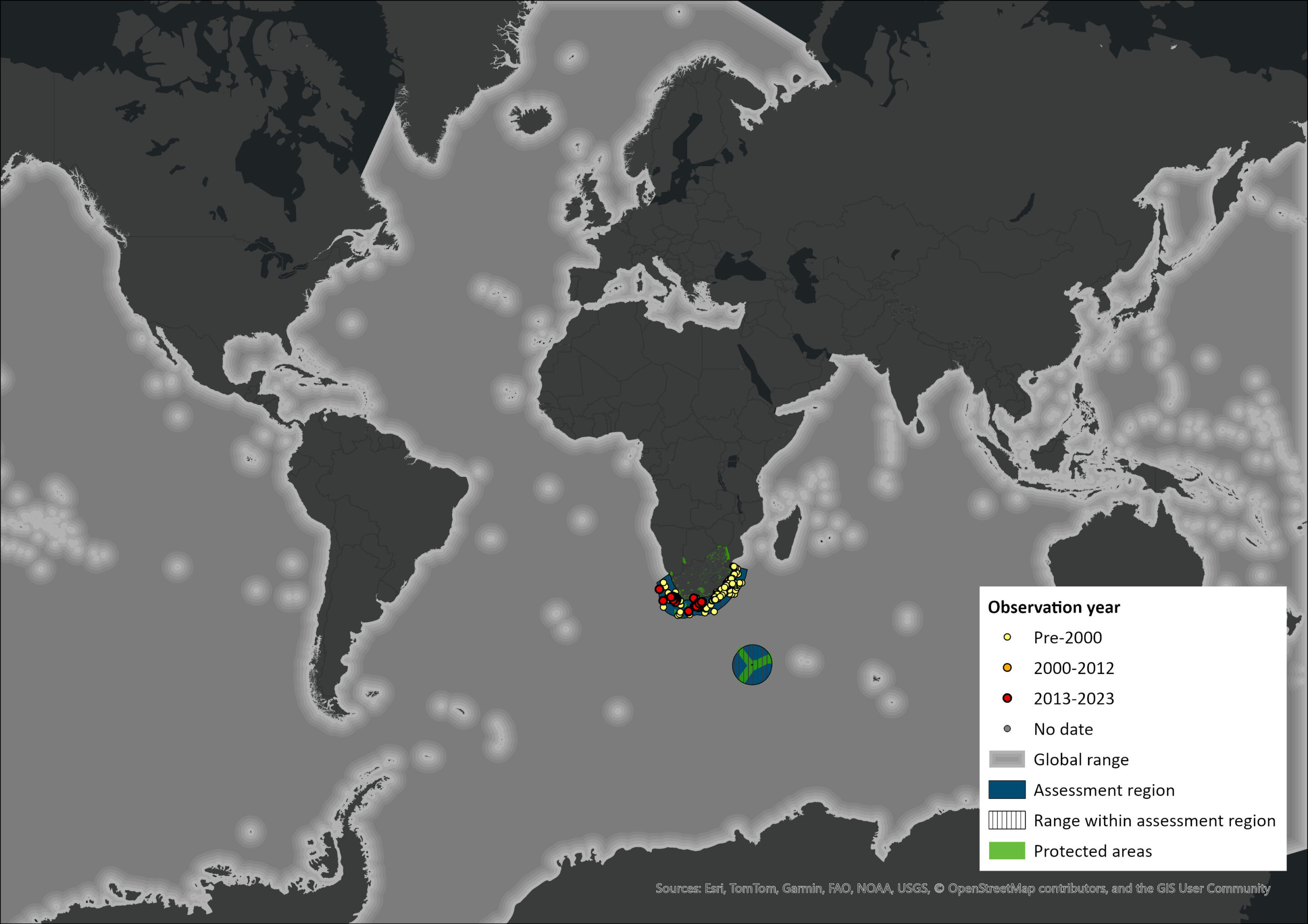 Figure 1. Distribution records for Sperm Whale (Physeter macrocephalus) within the assessment region (South Africa, Eswatini and Lesotho). Note that distribution data is obtained from multiple sources and records have not all been individually verified.