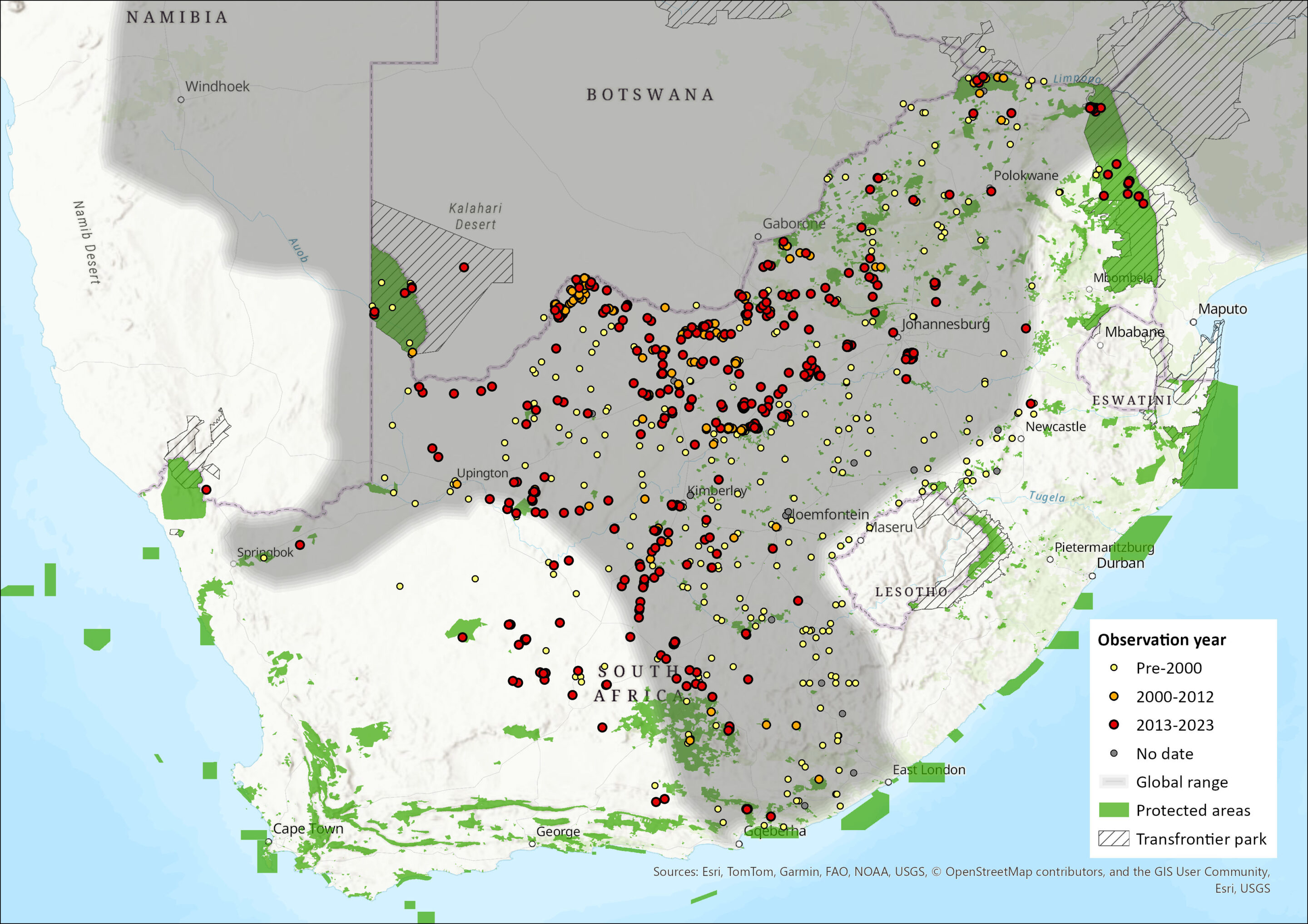 Cowan, OS. 2025. Modelling the change in potential species distribution of Springhare (Pedetes capensis) under predicted future climate change scenarios. Technical Report, Endangered Wildlife Trust.Â