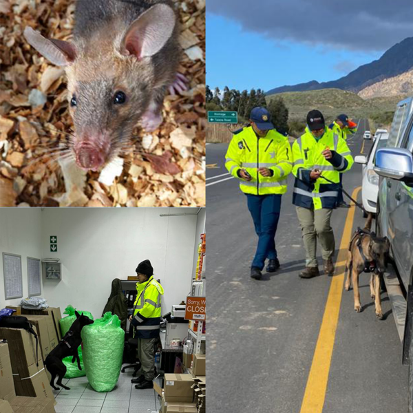 Three of our dogs are based in Gauteng, screening cargo at O.R. Tambo International Airport. All three dogs are certified to detect rhino horn, elephant ivory, Lion bone, and pangolin scales, making us one of the few organisations with dogs that can detect different wildlife species. We carry out this work under our agreement with the Department of Forestry, Fisheries, and the Environment to provide wildlife detection dog support to its Environmental Management Inspectors (EMIs).